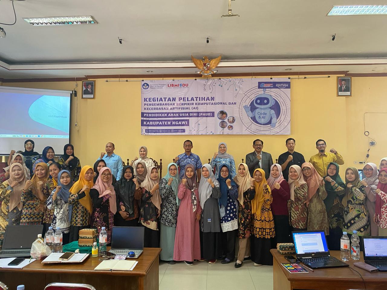 Ngawi, 10 Oktober 2025 – Dinas Pendidikan dan Kebudayaan Kabupaten Ngawi melalui Bidang Pembinaan PAUD dan Dikmas menyelenggarakan Pelatihan Pengembangan Berpikir Komputasional dan Kecerdasan Artifisial (AI) pada Pendidikan Anak Usia Dini (PAUD). Kegiatan ini berlangsung selama dua hari, 10–11 Oktober 2025, di Aula Graha Dwija Bhakti Dinas Pendidikan dan Kebudayaan Kabupaten Ngawi.