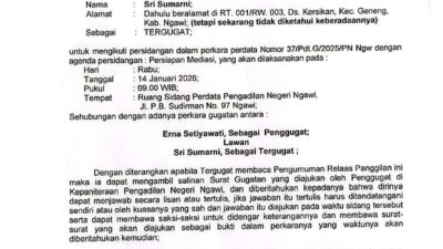 REDAKSIINDONESIANEWS | Ngawi-Pengadilan Negeri Ngawi RELAAS PANGGILAN KEPADA TERGUGAT Nomor 37/Pdt. G/2025/PN Ngw Tanggal 04…