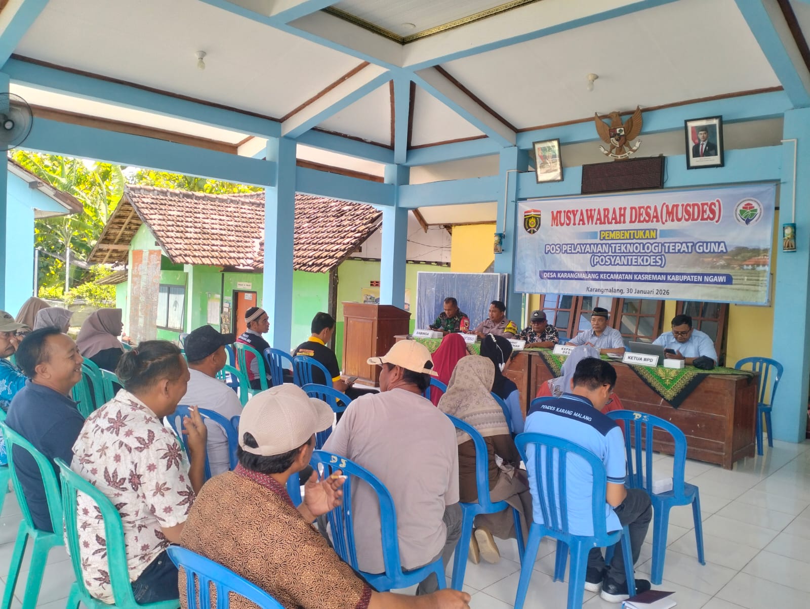 Ngawi – Pemerintah Desa Karangmalang, Kecamatan Kasreman, Kabupaten Ngawi, menggelar Musyawarah Desa (Musdes) dalam rangka pembentukan Pos Pelayanan Teknologi Tepat Guna Desa (Posyantekdes). Kegiatan tersebut dilaksanakan pada Senin, 30 Januari 2026, bertempat di Pendopo Kantor Desa Karangmalang.