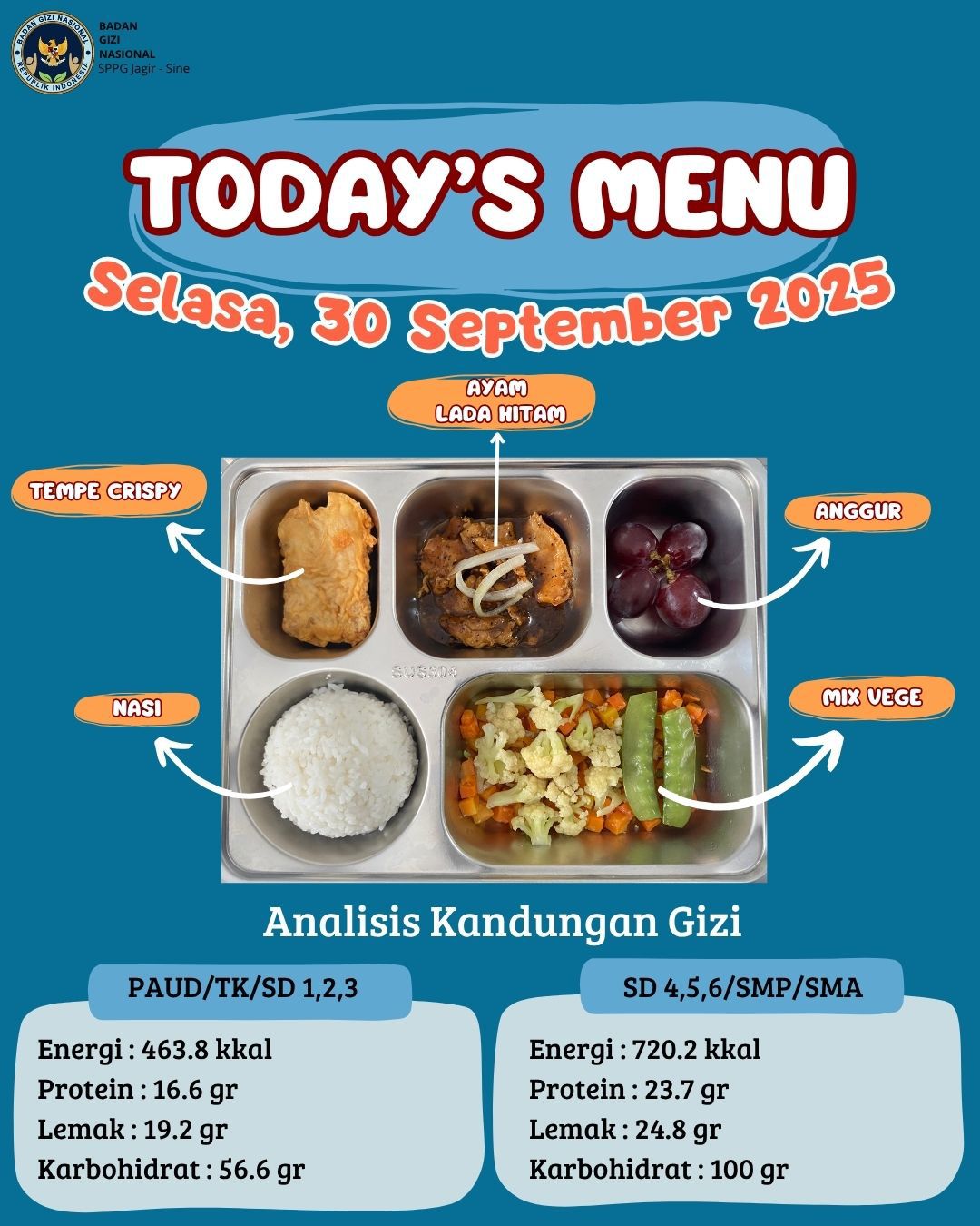 Adapun jumlah penerima manfaat program MBG di SMKN 1 Sine mencapai 1.106 siswa dari total sekitar 1.400 siswa, sementara sebagian lainnya tengah melaksanakan Praktik Kerja Lapangan (PKL).