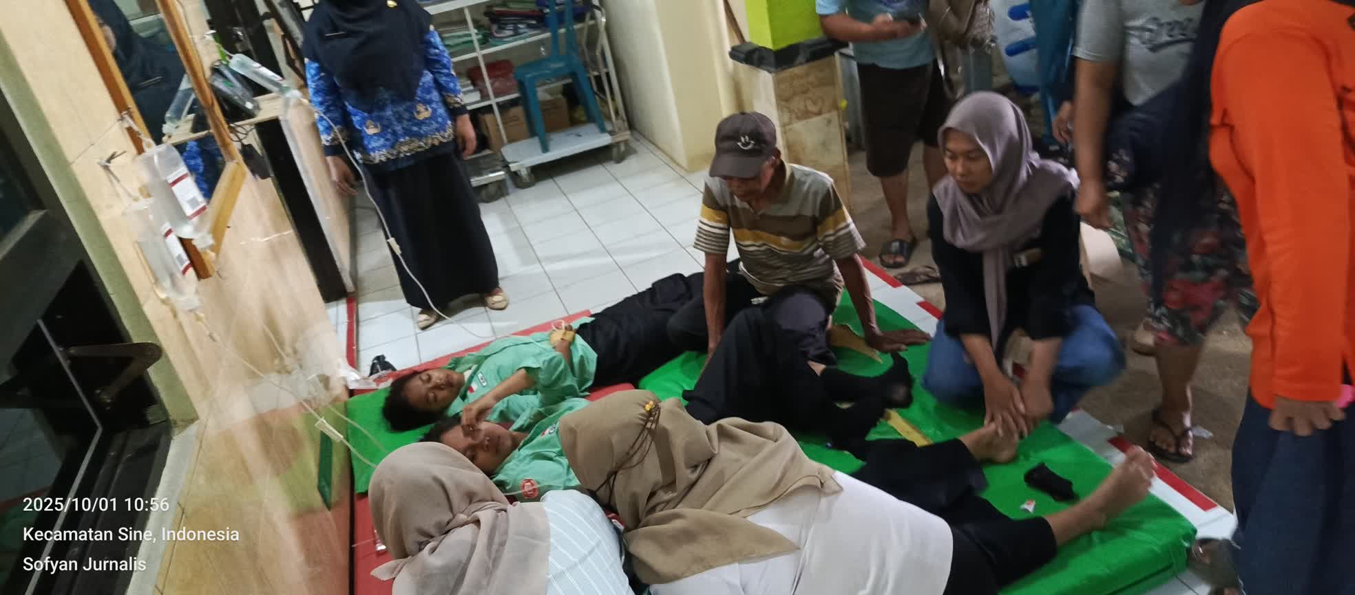 Berdasarkan data sementara, 37 siswa SMKN 1 Sine mengalami gejala serupa. Sebagian mendapatkan perawatan di Puskesmas Sine, sementara lainnya dirujuk ke Klinik Aisyah Sine. Selain itu, 4 siswa SMP Muhammadiyah Sine juga mengalami gejala serupa, dengan 2 orang dirawat dan 2 lainnya diperbolehkan pulang.